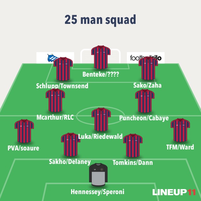To all the doom merchants out there, i was looking at our squad in general, and whilst the transfer window was generally chaotic and not planned it would seem, we still have a better squad than teams like Burnley, Huddersfield, Bournemouth, Newcastle etc, so although i accept we are light in both the goalkeeping and striker positions and we have included both Pape Soaure and Connor Wickham who are not fit yet to start games, we are still compared to the squad Holloway came up with in 2013, way ahead now in terms of quality. As I've listed out as follows, there is a lot of very good players (NOTE: players can play centre back or full back i.e Fosu-Mensah and Kelly, so i have put those players in both positions as options, same as with Punch and Chung-Lee as CAM position, plus Punch can also play right wing, and Wilf could play up front as an option and so on)