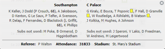 It's only the second time this century when we have been in the Premier League that we have not used any of the subs. A little strange given that time-wasting with a one-goal lead is very common The last time was in November 2004. Not hard to guess who is the one player that made both benches Two pretty good teams there, a very good back four for Palace