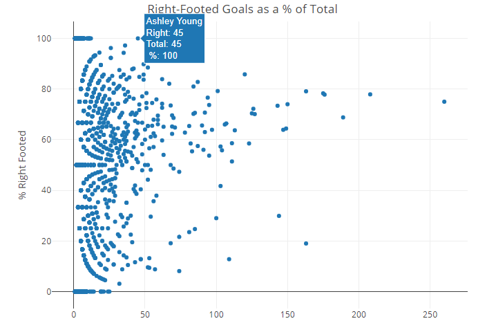 Of Premier League players who have scored all their goals with right footed shots Luka stands alone in second place with 12