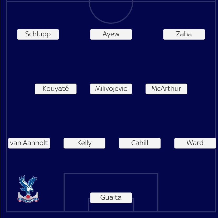 Zzzzzzzzzzzz. 4-4-2 yet again, only I don’t really count these matches much. . Only this time without Townsend or a single wide player playing wide, unless you include Schlupp. So 3 central midfielders and a sort of midfielder in Schlupp, a supporting striker in Zaha when he isn’t one, but at least there’s someone with some mobility upfront instead of the wardrobe. Roll on January or different setup, on the pitch, coaching staff or boardroom.