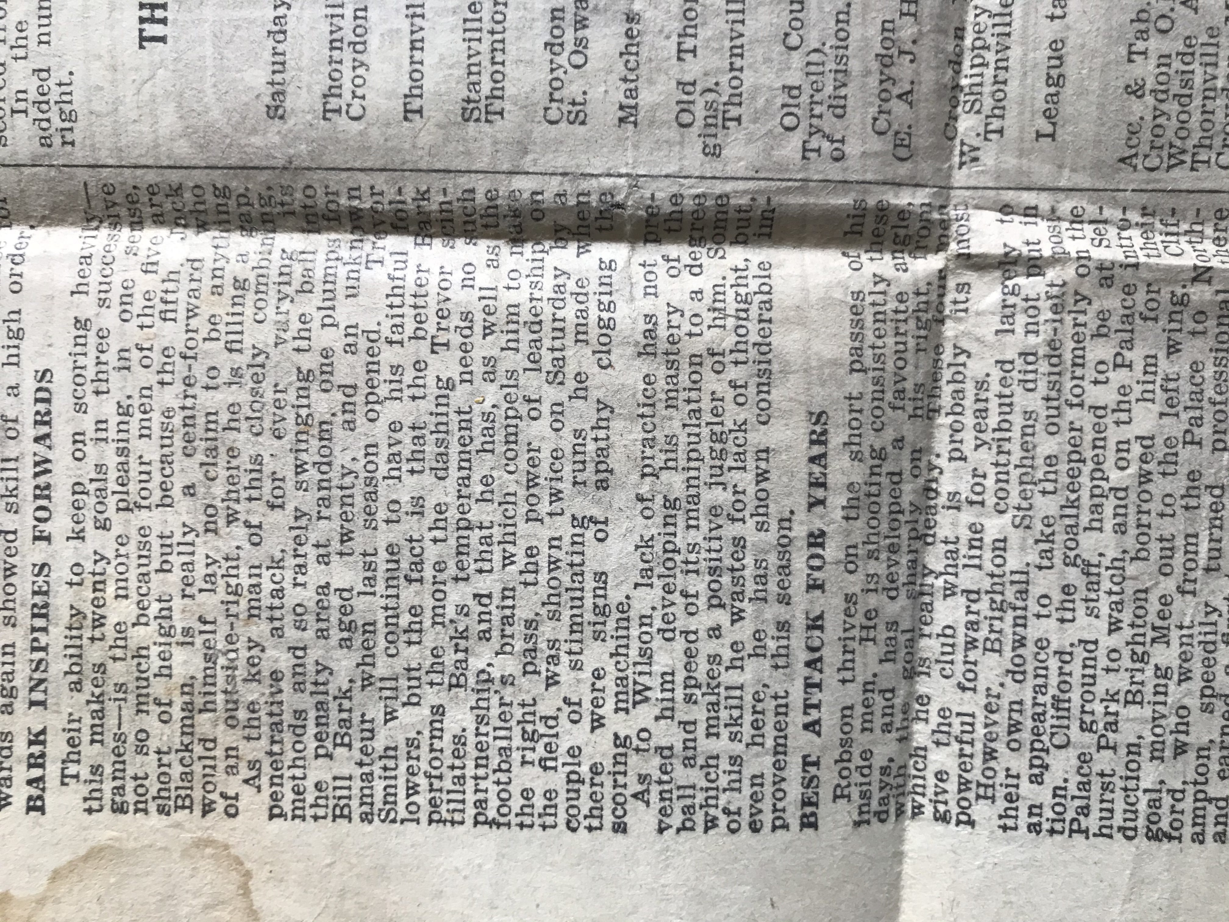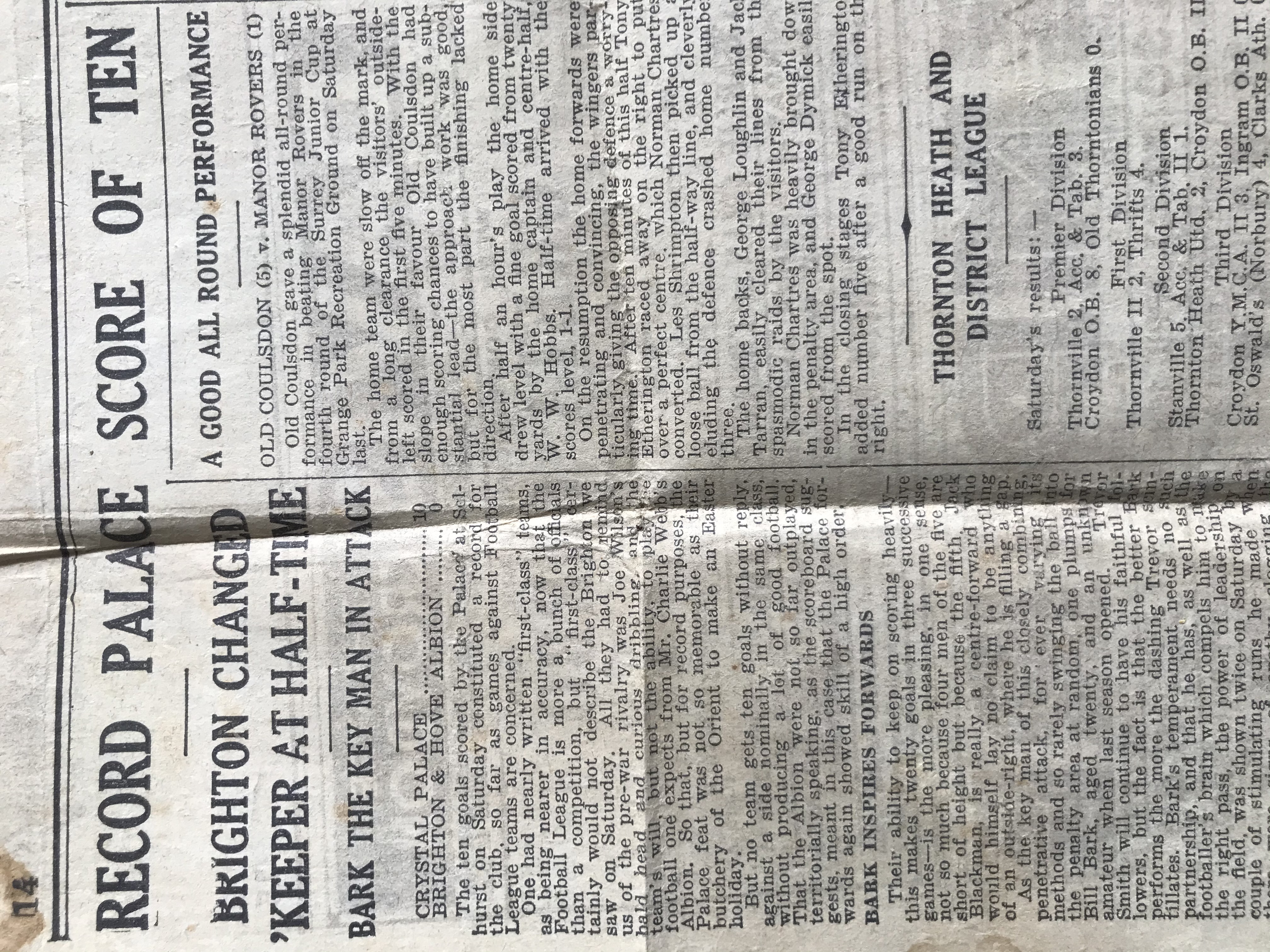 As mentioned it was a war time game. Jack Blackman who’s mentioned in the report played for Palace from 1936-1946. Interesting point, the local results from the Thornton Heath league down in the bottom L/H corner, a league I played in during 80’s