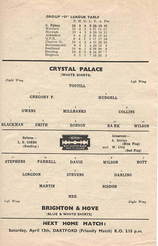 The 1942 game was actually 10-1 (which must have spoiled the day for Palace fans!) but we did beat them 10-0 on April 6, 1940. It was a War League game. Programme scans attached. Check out the league table.
