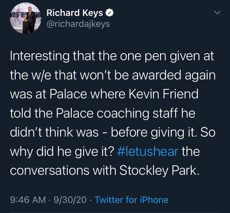 The man in charge of VAR was a certain Mr A Taylor who likes to award penalties for Everton against Palace. Aided and abetted by that other whisky alpha Kevin (no friend of Palace) Friend.