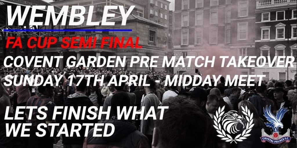 Holmesdale Fanatics are organising a pre-match meet-up in Covent Garden from midday on the day of the Semi Final (17th). All Palace fans welcome.