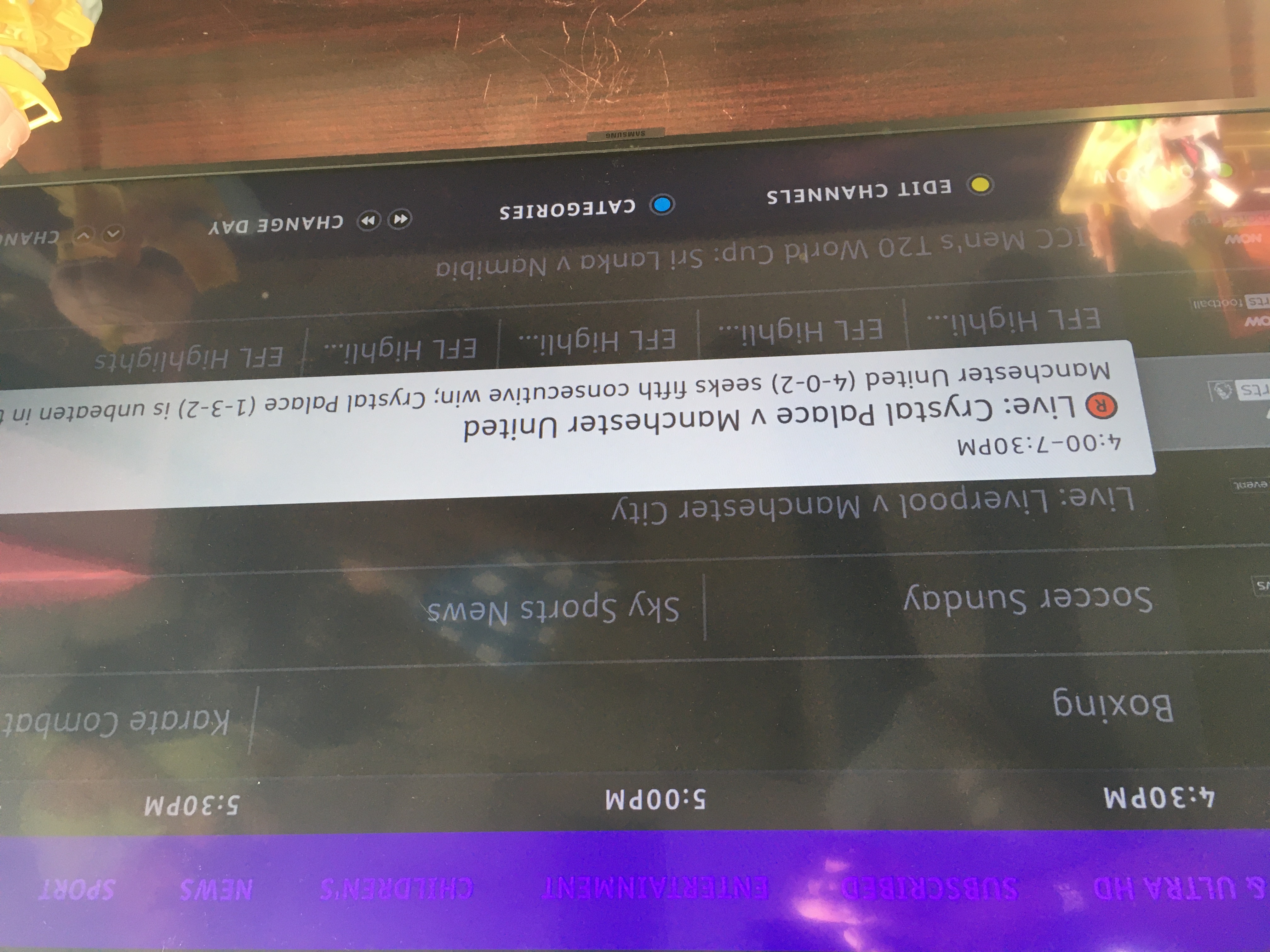 In my TV programme guide it shows we’re playing Man U next Sunday 16th at 4.00pm Well it’s being shown by Sky